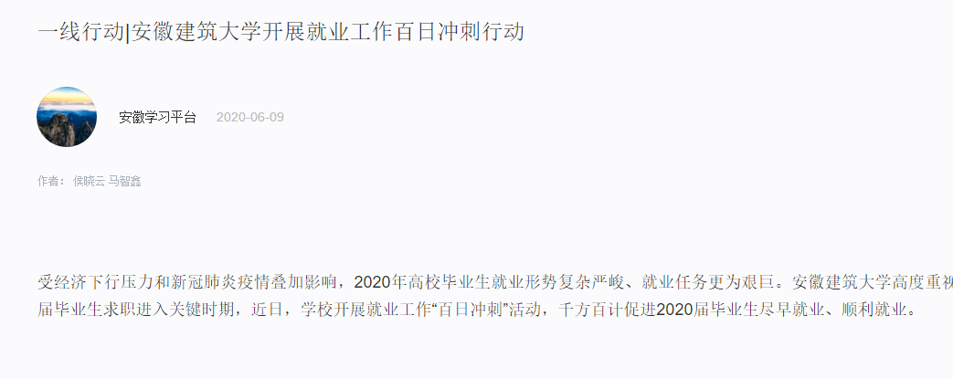 编者按:近日,学校开展就业工作“百日冲刺”活动,千方百计促进2020届毕业生尽早就业、顺利就业。69,学习强国对此进行了转载推介。
