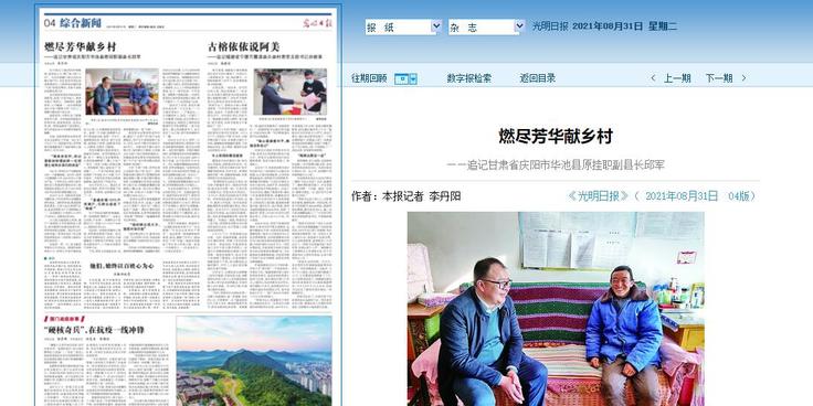 【媒体建大】光明日报、中央电视台新闻联播等:燃尽芳华献乡村——追记甘肃省庆阳市华池县原挂职副县长邱军