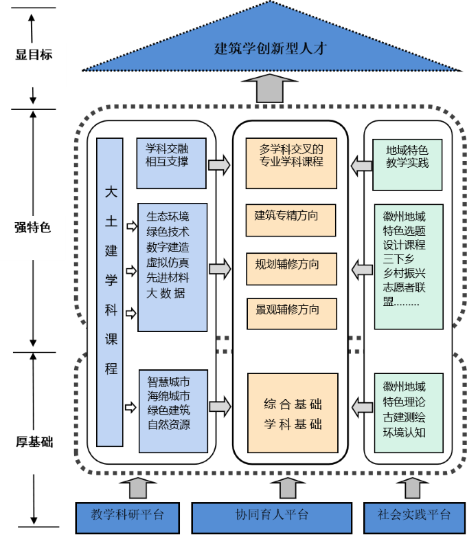 图2 厚基础、强特色建筑类创新人才培养体系