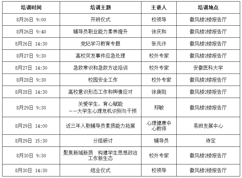 为深入学习贯彻习近平总书记关于教育的重要论述精神,更好发挥辅导员在学生教育管理服务中的作用,提升辅导员的职业素养和专业能力,推动学生工作高质量发展。经研究决定,举办2024年暑期辅导员培训。具体要求如下: