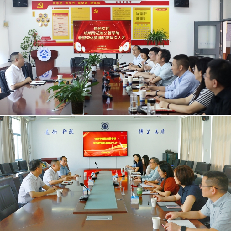 高跃峰在经管、公管学院与荣休教师代表、高层次人才代表亲切座谈。他代表学校向荣休教师为学校和学院发展做出的重要贡献表示衷心的感谢,并对学院高层次人才在科研、教学和社会服务中取得的突出成绩给予了高度的肯定。他强调,荣休教师是学校的宝贵财富,高层次人才是推动学校高质量发展的关键力量,学校十分关心教师发展,将继续做好各项工作,为广大教师创造更好的工作生活环境和个人发展平台。