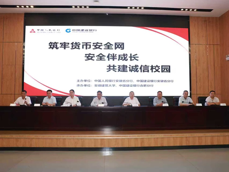 本网讯 为全面提升学生的金融安全素养,筑牢校园金融安全防线。近日,中国人民银行安徽省分行、中国建设银行安徽省分行在我校举办了以“筑牢货币安全网 安全伴成长 共建诚信校园”为主题的反假币、反电诈宣传教育活动。校党委常委、副校长高跃峰致欢迎辞,中国人民银行安徽省分行二级巡视员戚军讲话,中国建设银行安徽省分行行长助理王晖及合肥分行有关领导参加活动。财务处、保卫处具体承办。
