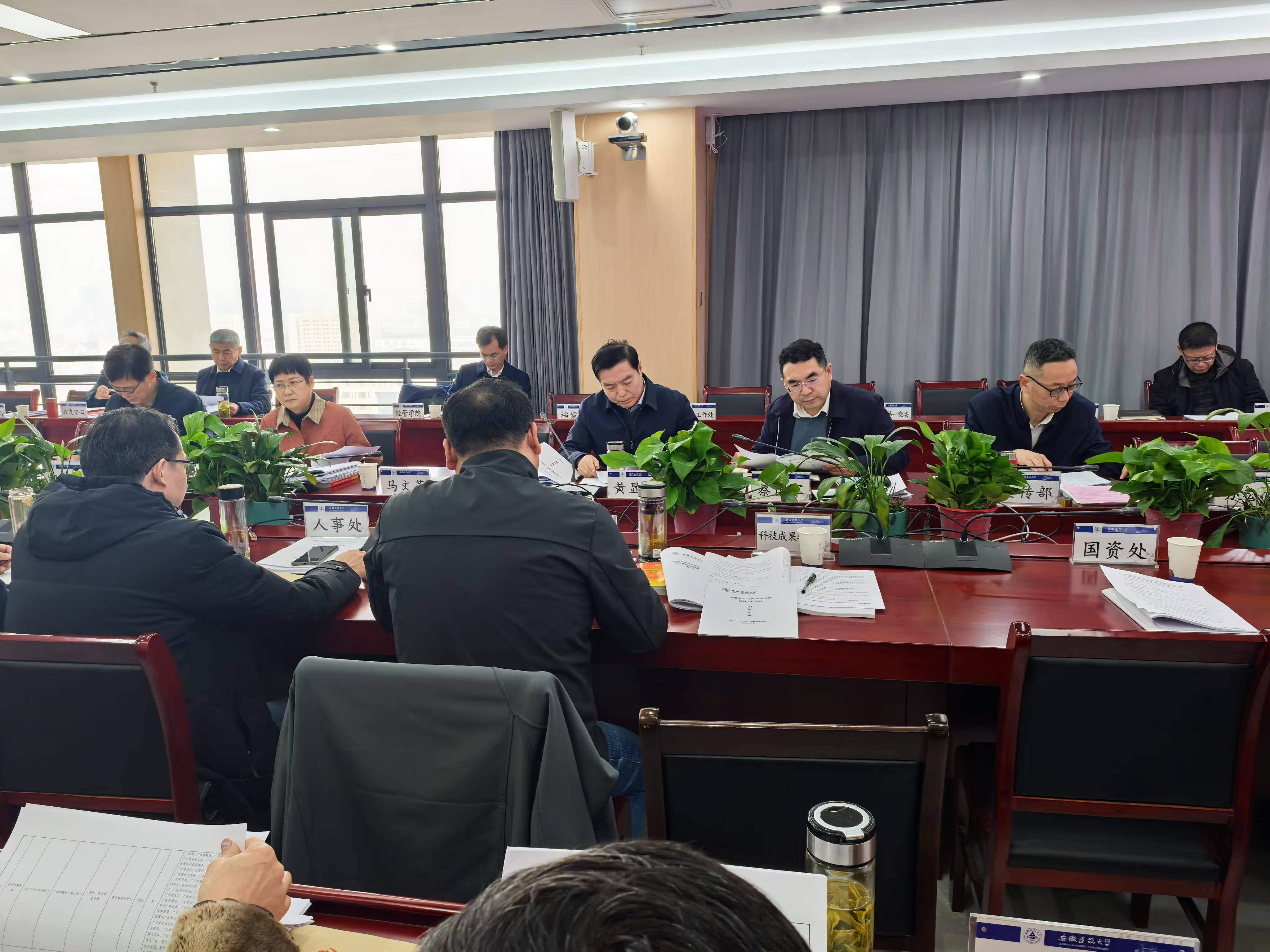 本网讯1月14日, 学校在紫云路校区徽风楼1506会议室召开2024年度教材工作会议,校领导黄显怀、王玉兰、蔡国军出席会议,教材工作领导小组全体成员及教务处相关工作人员参加会议,党委副书记、校长黄显怀主持会议。